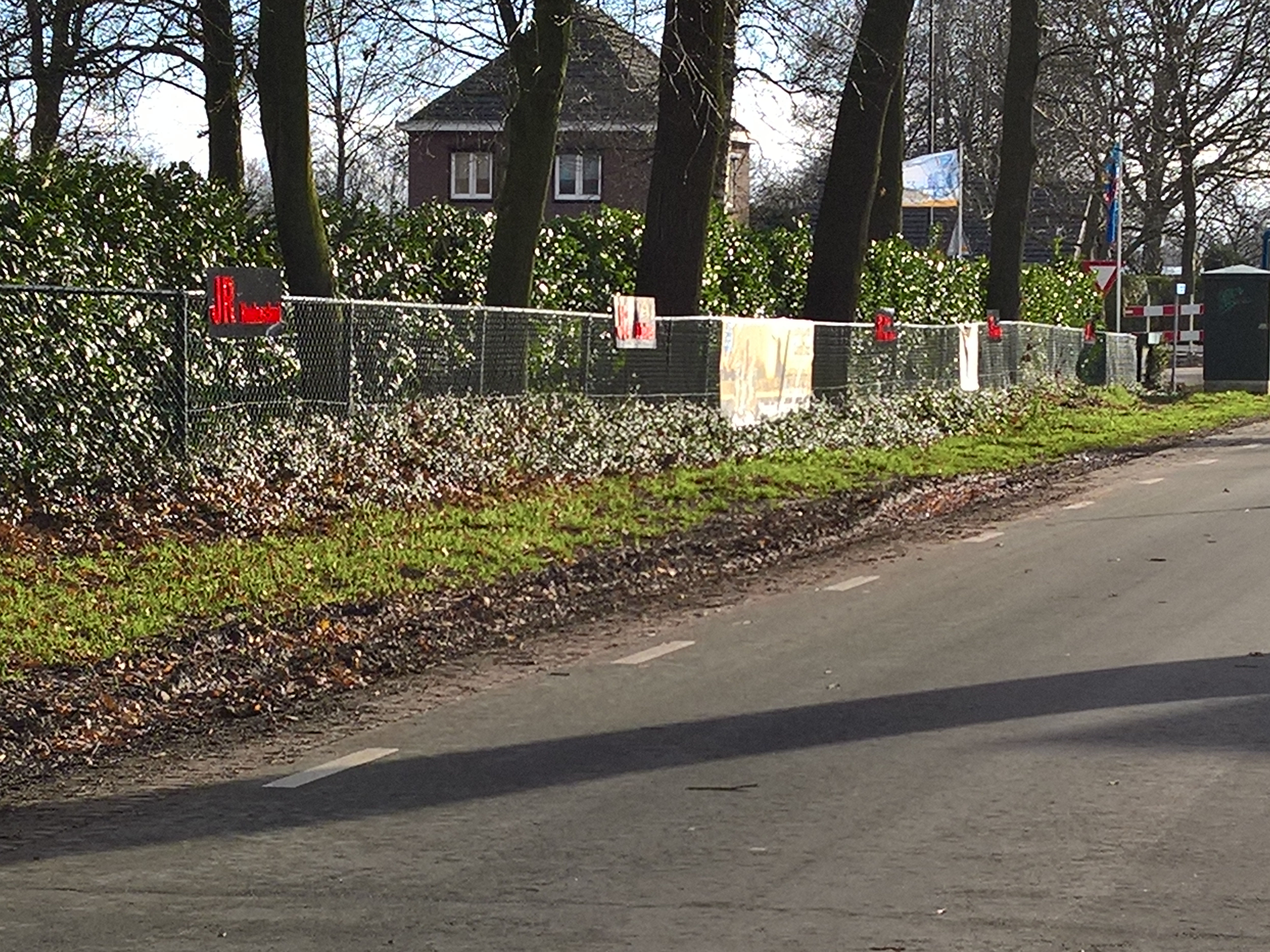 De eerste nieuwe reclameborden zijn aan het hek gehangen.